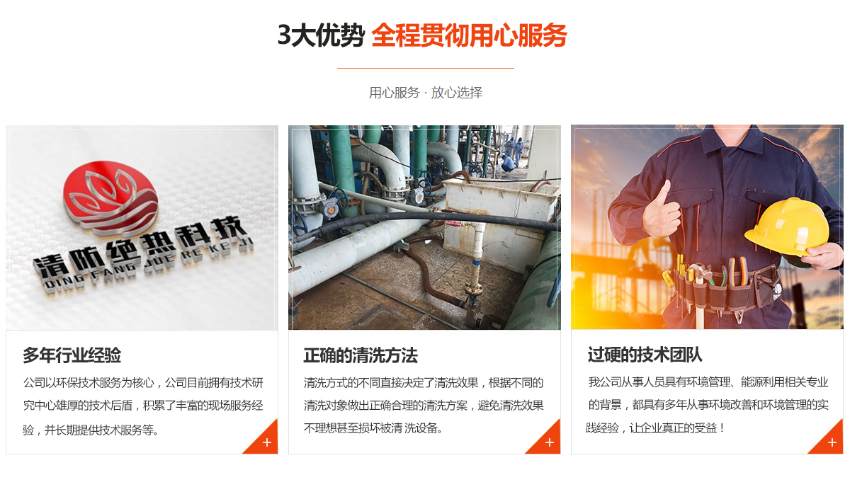 專業(yè)從事化學(xué)清洗、物理清洗各種型號(hào)換熱器、鍋爐、管線、維修,污水處理設(shè)施的修復(fù)、管理、經(jīng)營、技術(shù)咨詢及配套服務(wù);環(huán)境技術(shù)開發(fā);防腐、保溫等領(lǐng)域的工程施工、技術(shù)咨詢等;目前主要合作單位以煤化工、發(fā)電廠、治煉廠為主;公司目前擁有技術(shù)研究中心雄厚的技術(shù)后盾,積累了豐富的現(xiàn)場(chǎng)服務(wù)經(jīng)驗(yàn),并長期提供技術(shù)服務(wù)等。